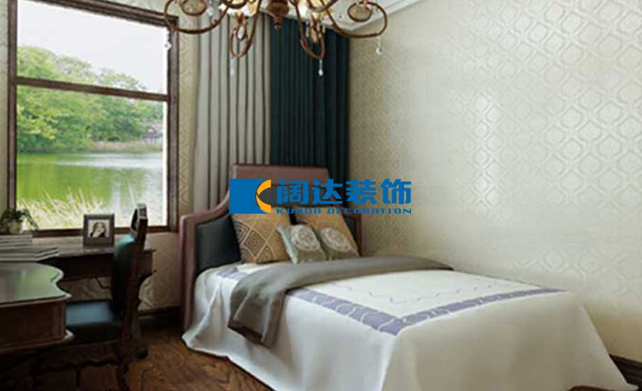次臥室:次臥室為男孩房,墻面采用藍(lán)色豎條壁紙顯得活潑可愛。