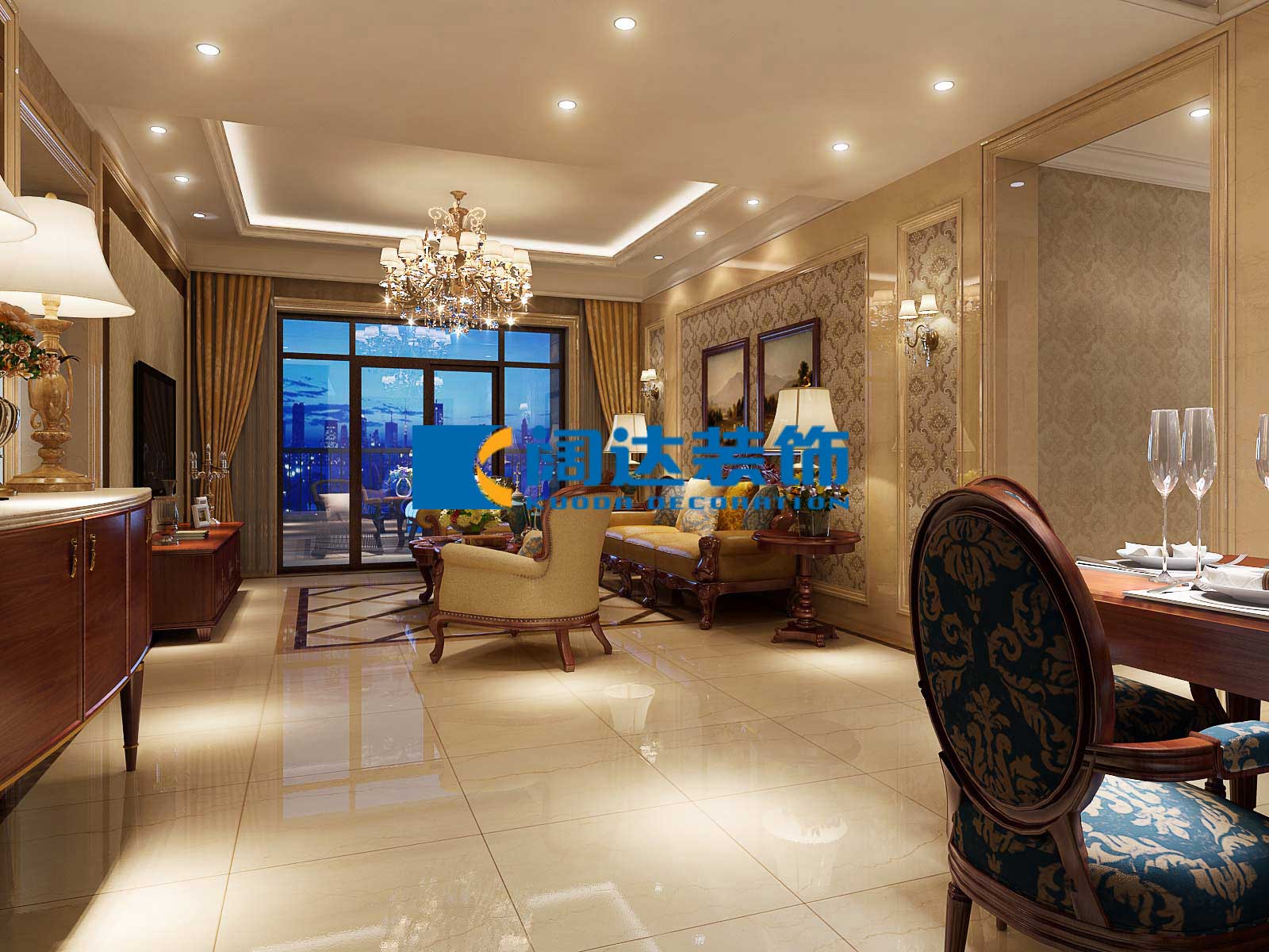本案例采用歐式設計風格,通過整體色彩及家具的搭配營造自然、舒適、高雅的生活氛圍,此設計案例也在相當程度上表現出其居住者的品位、愛好和生活價值觀。